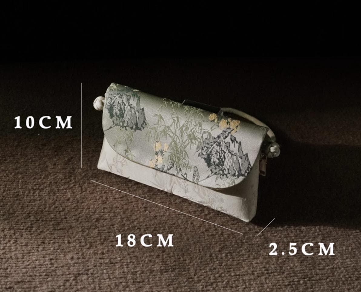 Silk Brocade Crossbody Purse – Handmade Oriental Landscape Design Bag for Daily Elegance and Gift Giving